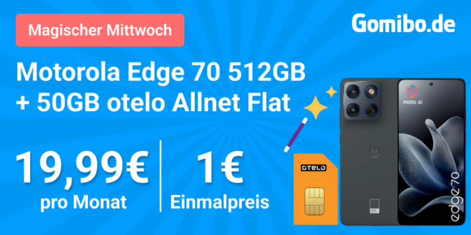 Motorola Edge 70 512GB & Zubehörpaket für einmalig 1 Euro mit 50GB Allnet Flat nur 19.99 Euro monatlich. Das Zubehörpaket muss angefordert werden, Infos weiter unten! Bis maximal zum 28.01.2026 verfügbar, kann vorher ausverkauft bzw. in der angegebenen beendet sein. Somit, nur solange der Vorrat beim Anbieter reicht! Beachte bitte mögliche Einschränkungen bei der Rufnummermitnahme, alle Informationen zur Rufnummermitnahme findest du HIER. Eine Terminierung (Wunschdatum) ist bei diesem Angebot nicht möglich. Einmalige Anschlussgebühr 39.99,-€, kann per App gespart werden, siehe weiter unten! Mindestvertragslaufzeit 24 Monate.