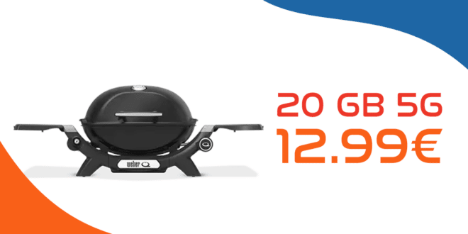 Weber Gasgrill Q1200N für einmalig 29 Euro mit 20GB Allnet Flat nur 12.99 Euro monatlich. Bis maximal zum 30.04.2026 verfügbar, kann vorher ausverkauft bzw. in der angegebenen beendet sein. Somit, nur solange der Vorrat beim Anbieter reicht! Beachte bitte mögliche Einschränkungen bei der Rufnummermitnahme, alle Informationen zur Rufnummermitnahme findest du HIER. Eine Terminierung (Wunschdatum) ist bei diesem Angebot nicht möglich. Einmalige Anschlussgebühr 39.99,-€. Mindestvertragslaufzeit 24 Monate.